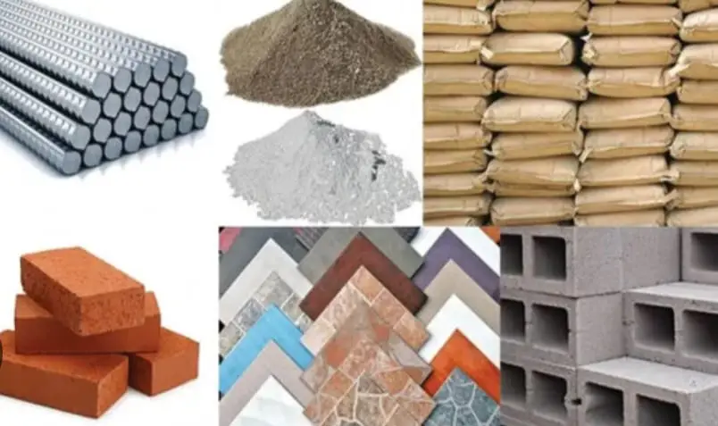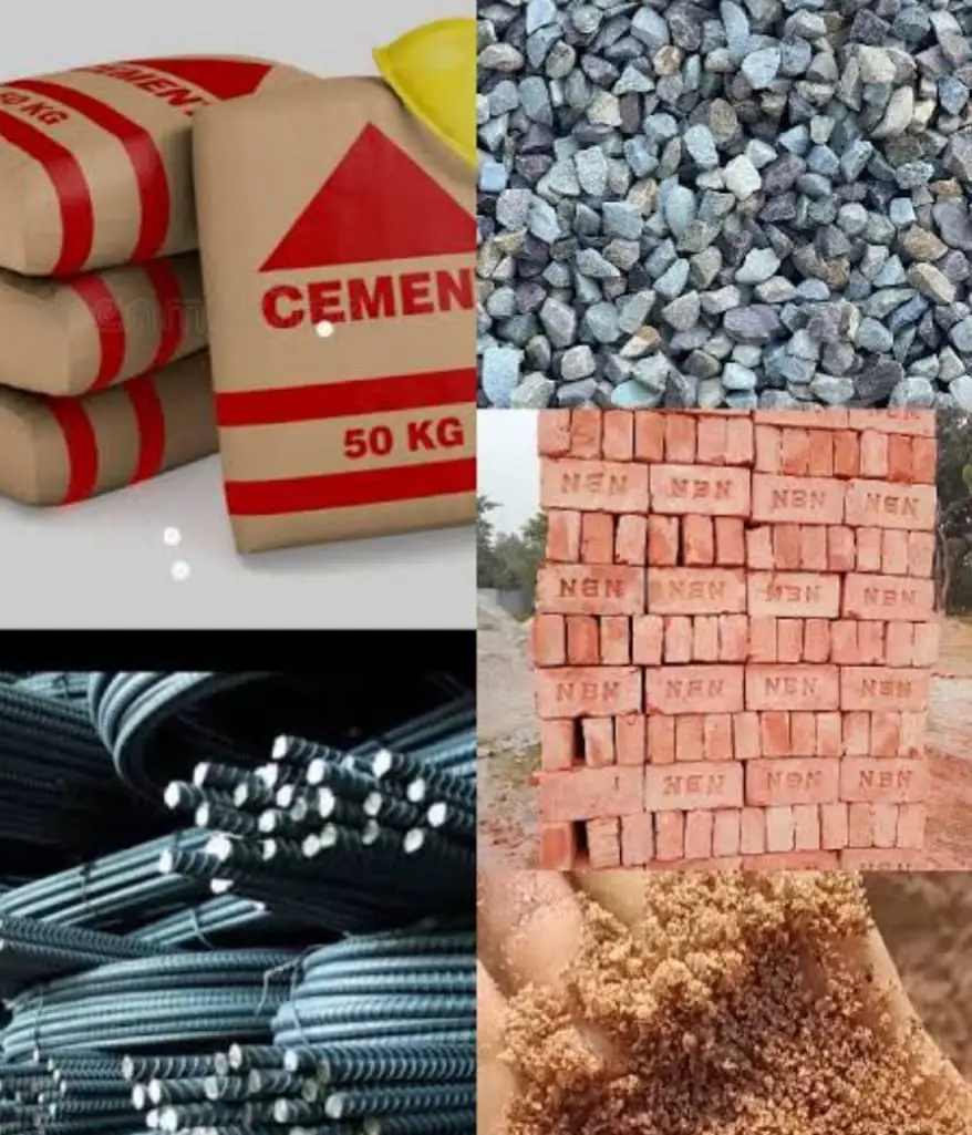 ইট, বালু, সিমেন্টের বস্তা, পাথর/চিপস, টাইলস, রডের ছোট লট, নির্মাণ সামগ্রী ইত্যাদি।