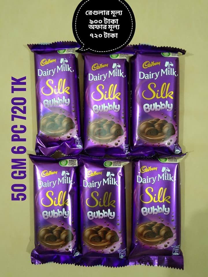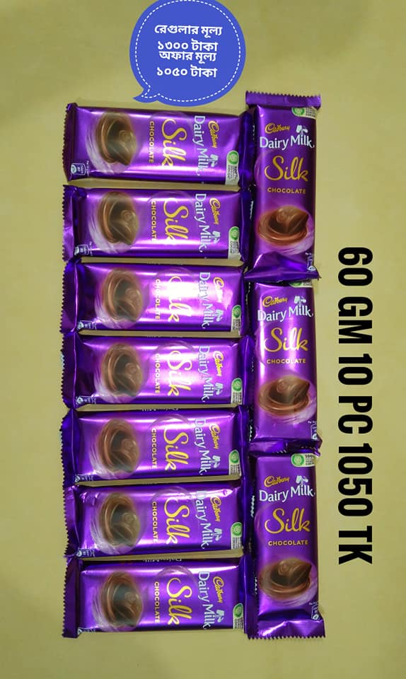 Offer -12. Dairymilk Silk 150 gm +Dairymilk Silk frut & Nut 137 gm + Dairymilk bubly 120 gm 03 piece per pak only 900 tk( Regular price 1150)